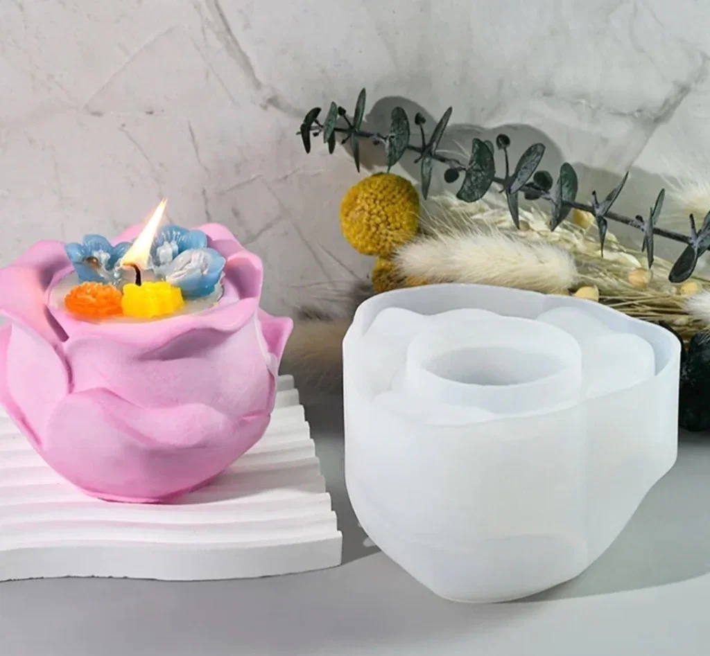 Molde de silicona Porta vela o maceta Rosa con pétalos