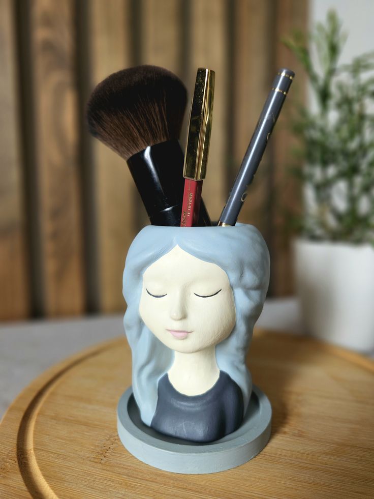 Molde de silicona Maceta o porta brochas Niña con pelo suelto