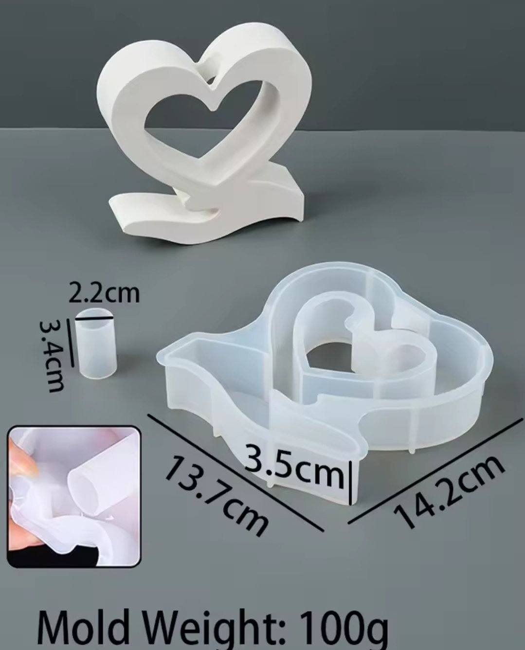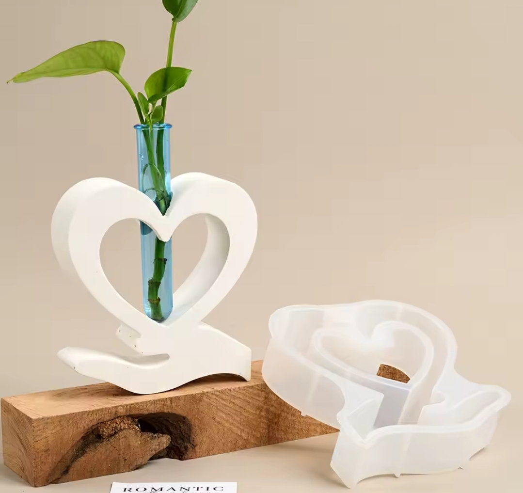 Molde de silicona Florero hidroponia mano con corazon
