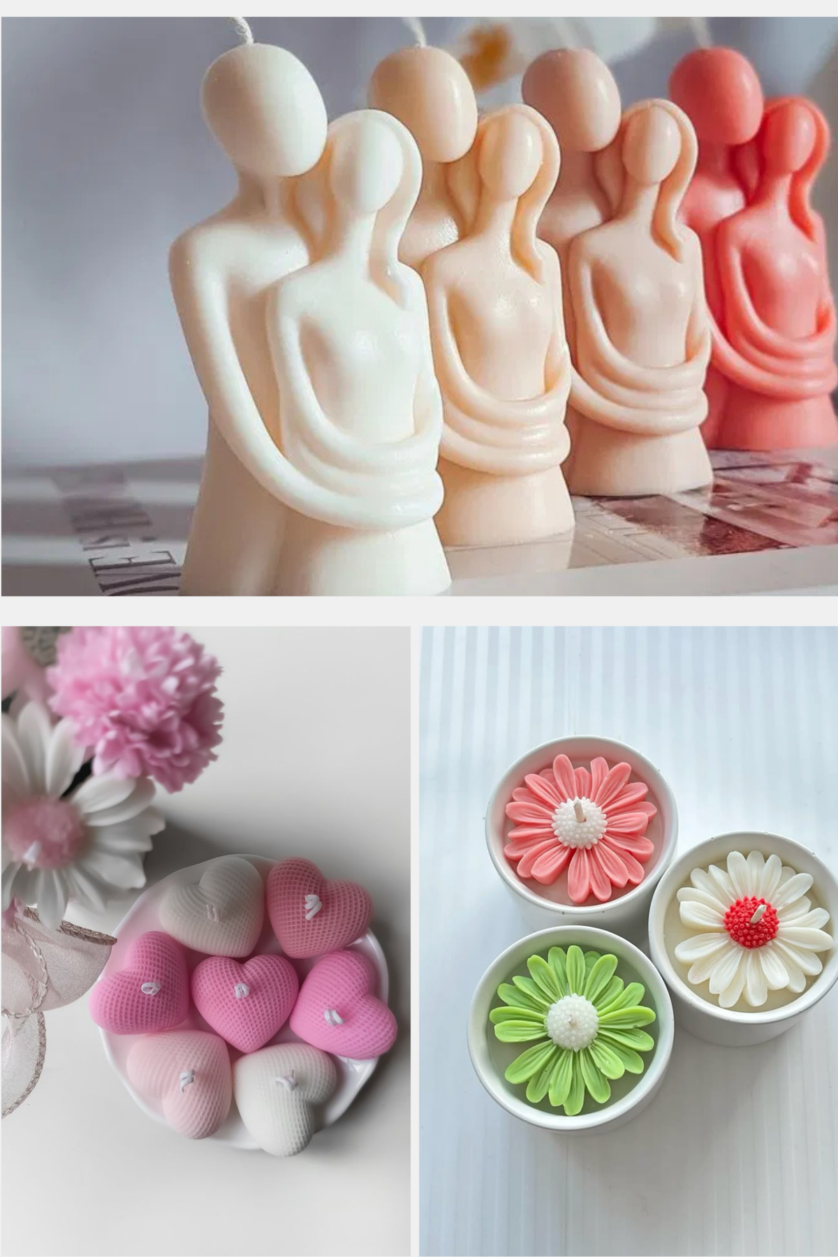 En este combo de 3 piezas para VELAS Y tambien yeso/ concreto encontras