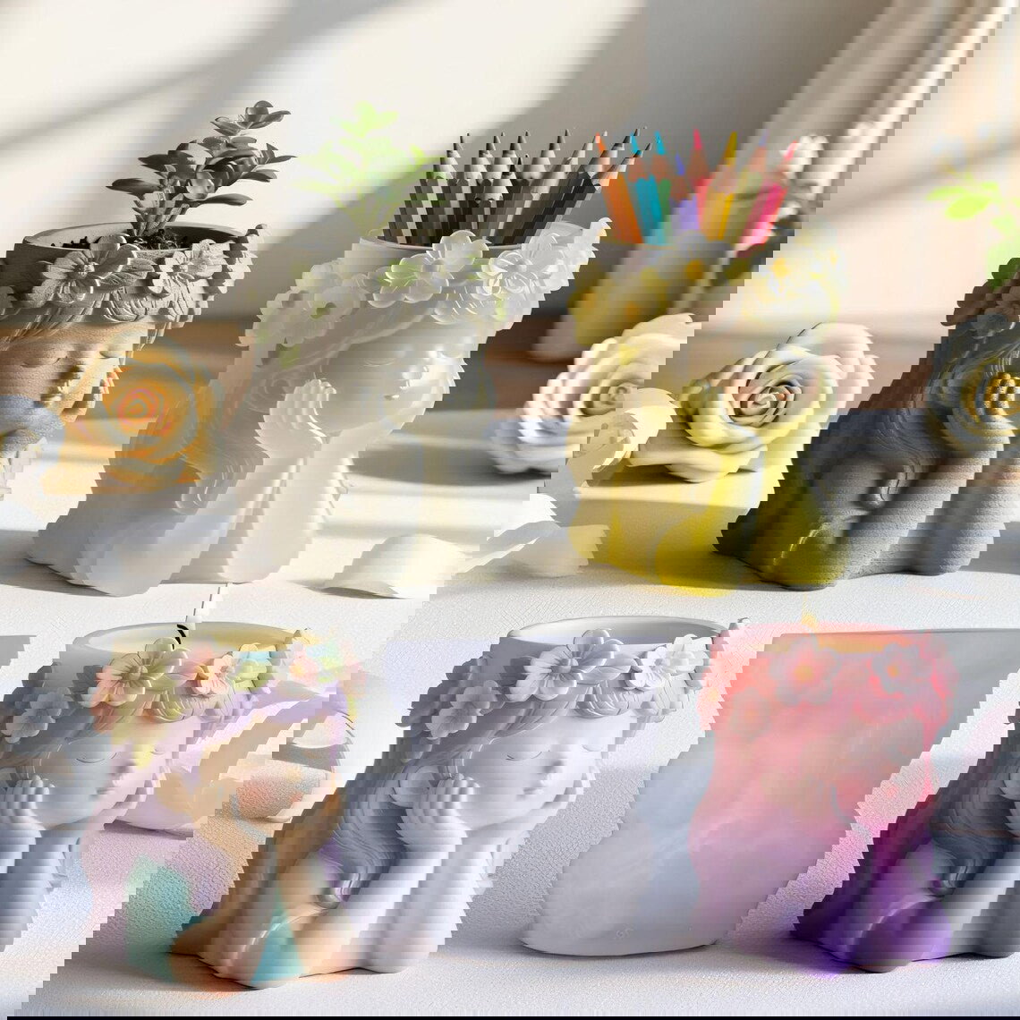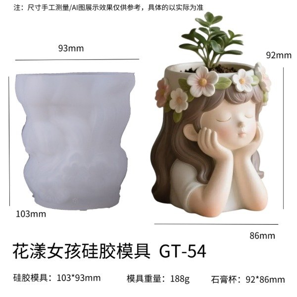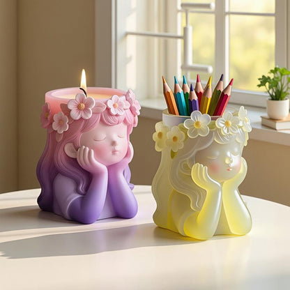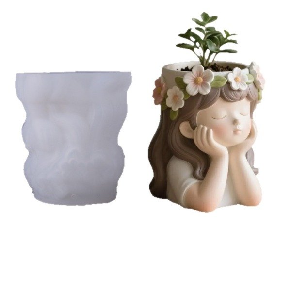 🌛Molde de silicona para realizar pieza en yeso o cemento con forma de niña con corona de Flores.