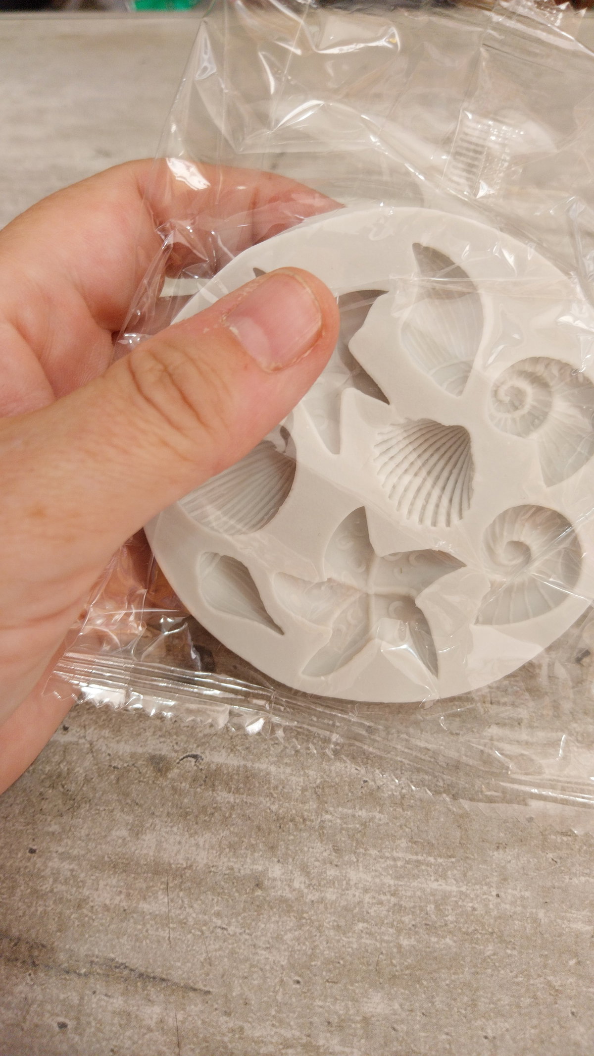 El objeto de la imagen es un molde de silicona con formas marinas.