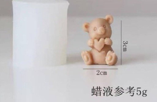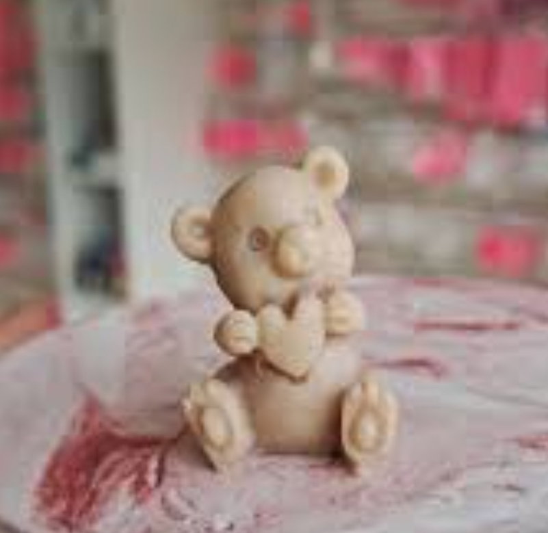 Molde de silicona con forma de osito abrazando un corazón, diseñado para crear figuras decorativas.