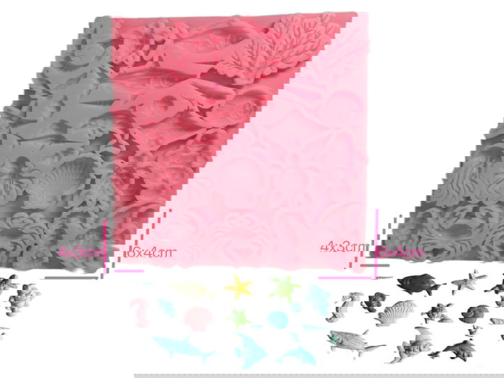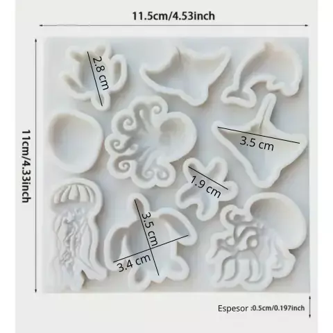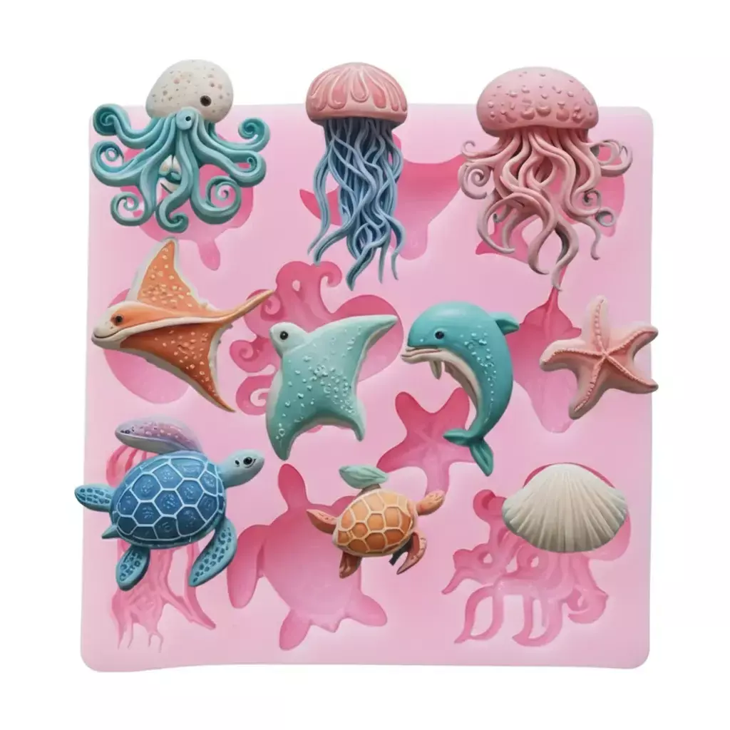 Incluye formas de pulpo, medusa, tortuga y conchas marinas.