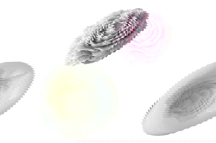 El objeto de la imagen es un molde de silicona con forma de flor de peonía utilizado principalmente para artesanías y repostería.