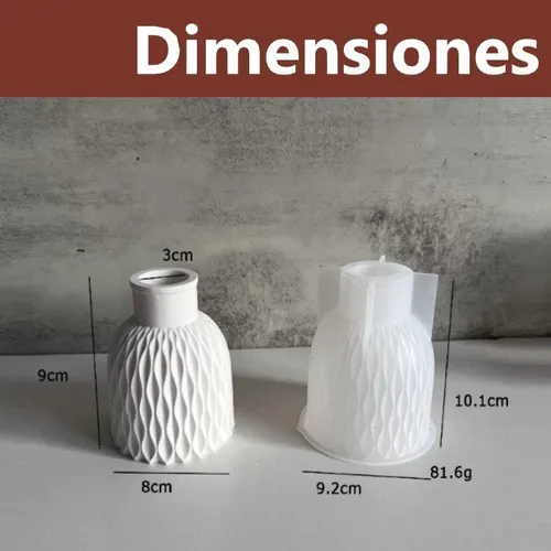 Dimensiones: El molde tiene aproximadamente 9.2 cm de ancho y produce un florero de unos 8 cm de ancho.