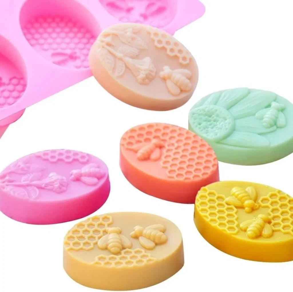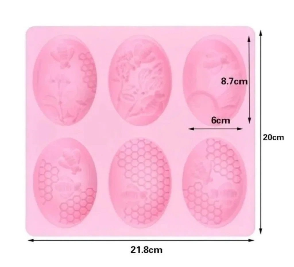 Molde de silicona Jabones abejas y panal x 6 ovalado